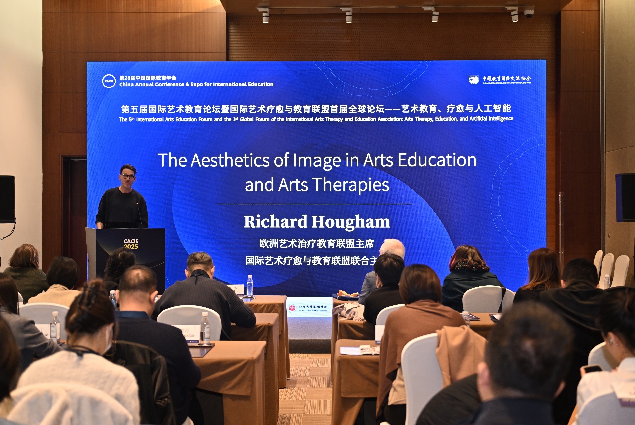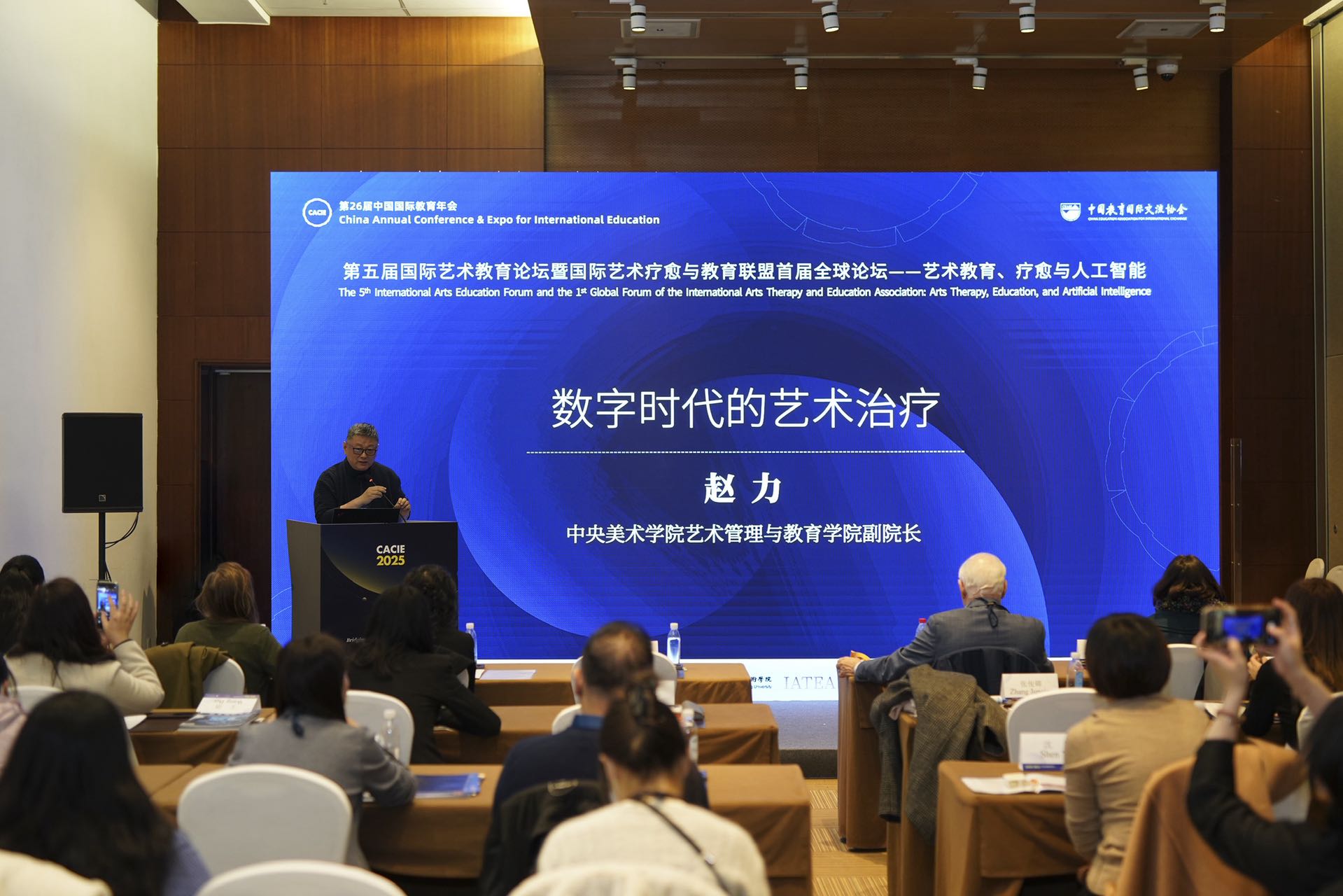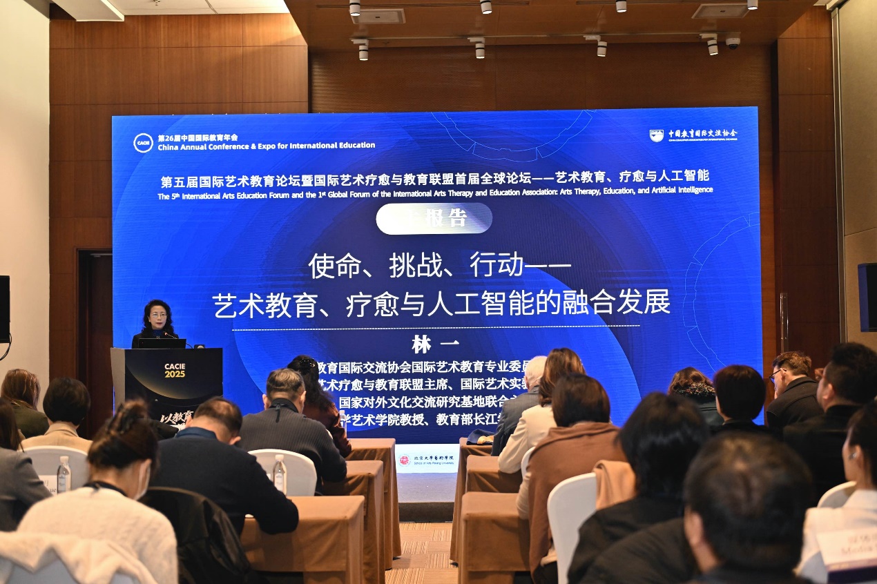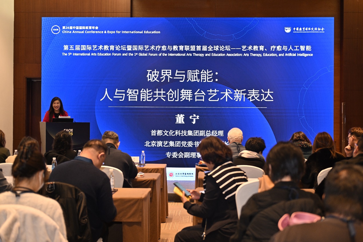 本届中国国际教育年会暨展览由中国教育国际交流协会主办,以“以教育见世界”为主题,吸引了全球70多个国家和地区的5000余名中外教育界人士、驻华使领馆官员和企业代表等参加。第五届国际艺术教育论坛暨国际艺术疗愈与教育联盟首届全球论坛以“艺术教育、疗愈与人工智能”为主题,聚焦人工智能如何赋能艺术教育和疗愈,及其在创作、审美、保健(尤其是青少年心理健康)、文化传承等多方面的深远影响。