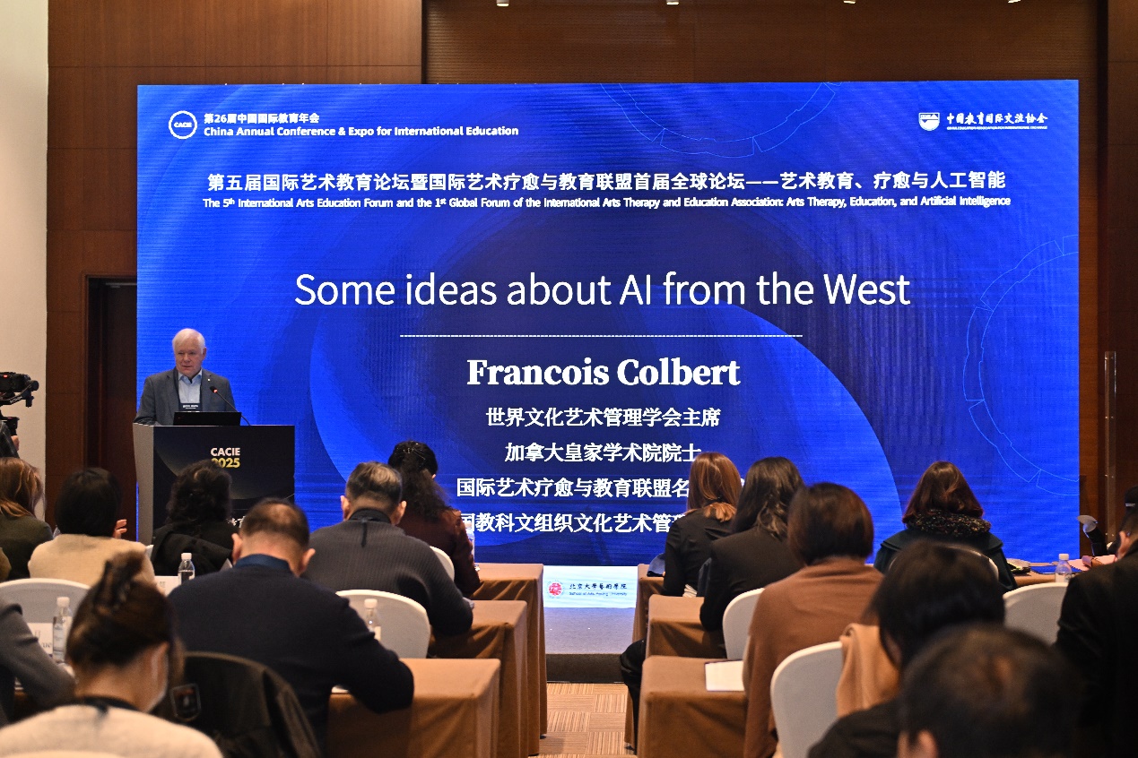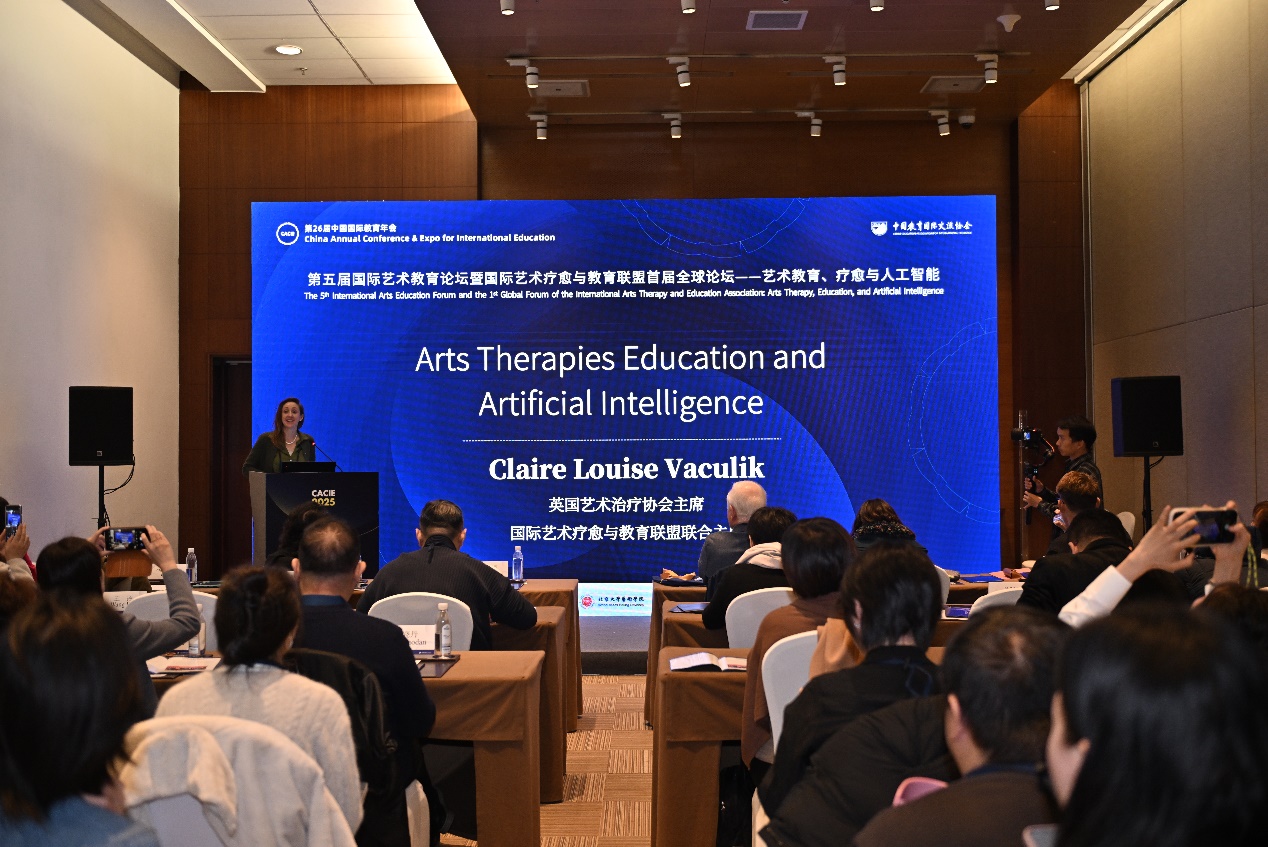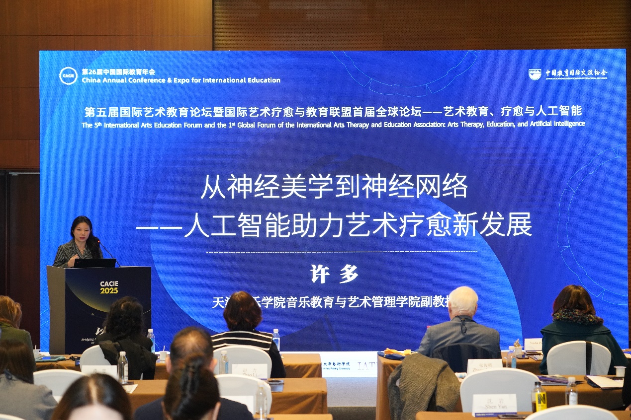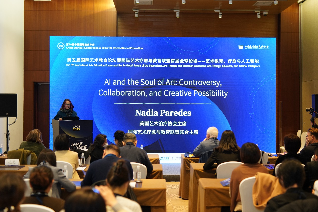 本届中国国际教育年会暨展览由中国教育国际交流协会主办,以“以教育见世界”为主题,吸引了全球70多个国家和地区的5000余名中外教育界人士、驻华使领馆官员和企业代表等参加。第五届国际艺术教育论坛暨国际艺术疗愈与教育联盟首届全球论坛以“艺术教育、疗愈与人工智能”为主题,聚焦人工智能如何赋能艺术教育和疗愈,及其在创作、审美、保健(尤其是青少年心理健康)、文化传承等多方面的深远影响。