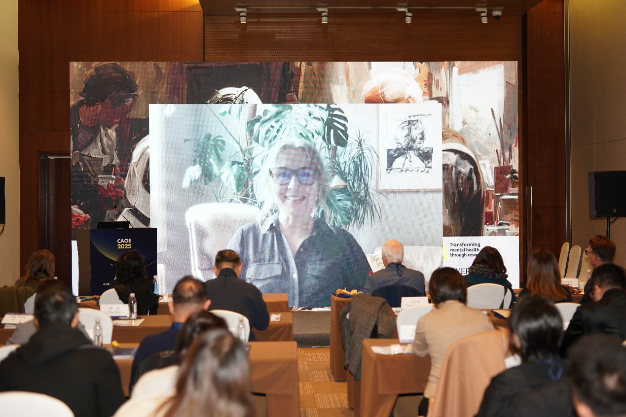 英国艺术治疗协会主席、国际艺术疗愈与教育联盟联合主席Claire Louise Vaculik教授以《Arts Therapies Education and Artificial Intelligence》为题发言。她指出,英国艺术治疗教育以艺术类本科学习为基础,培训强调具身存在、联合注意与肢体语言等核心能力。疫情加速了虚拟技术的应用,也对教育标准带来了挑战。她强调,AI可作辅助工具或协作伙伴,但人类治疗师的情感联结与创造性不可替代,呼吁从业者主动掌握AI技能,积极应对行业变革。